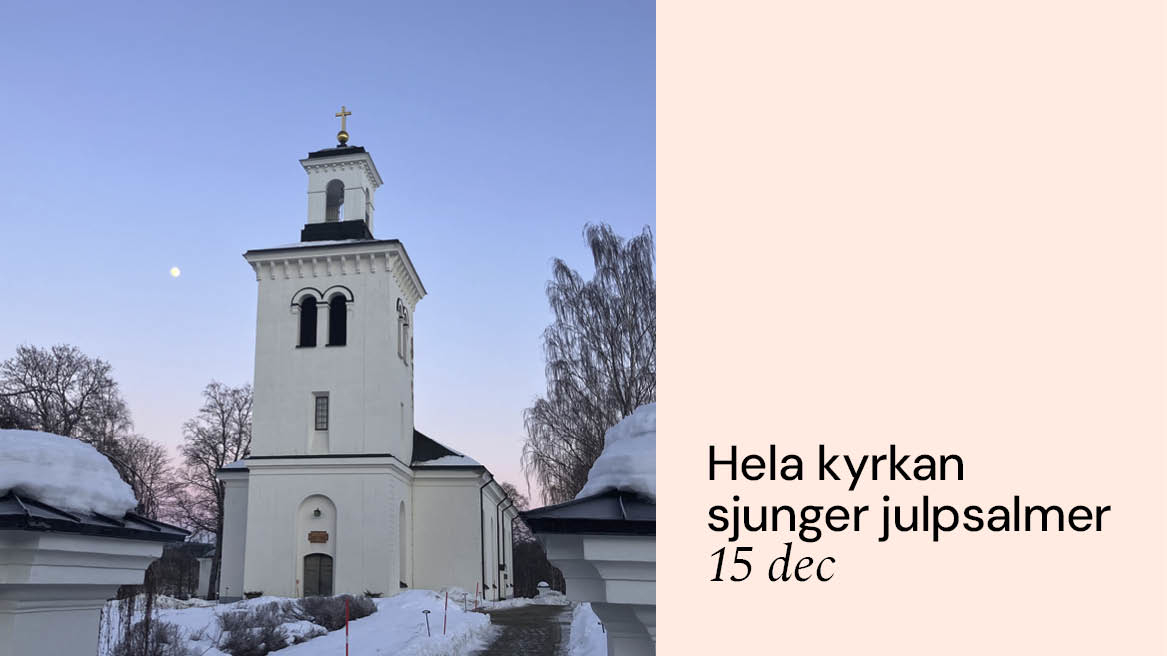 Välkommen att fira gudstjänst med nattvard. Mats Hallin, Jeanette Öhlén. 13.00–16.00 · måndag 9 december