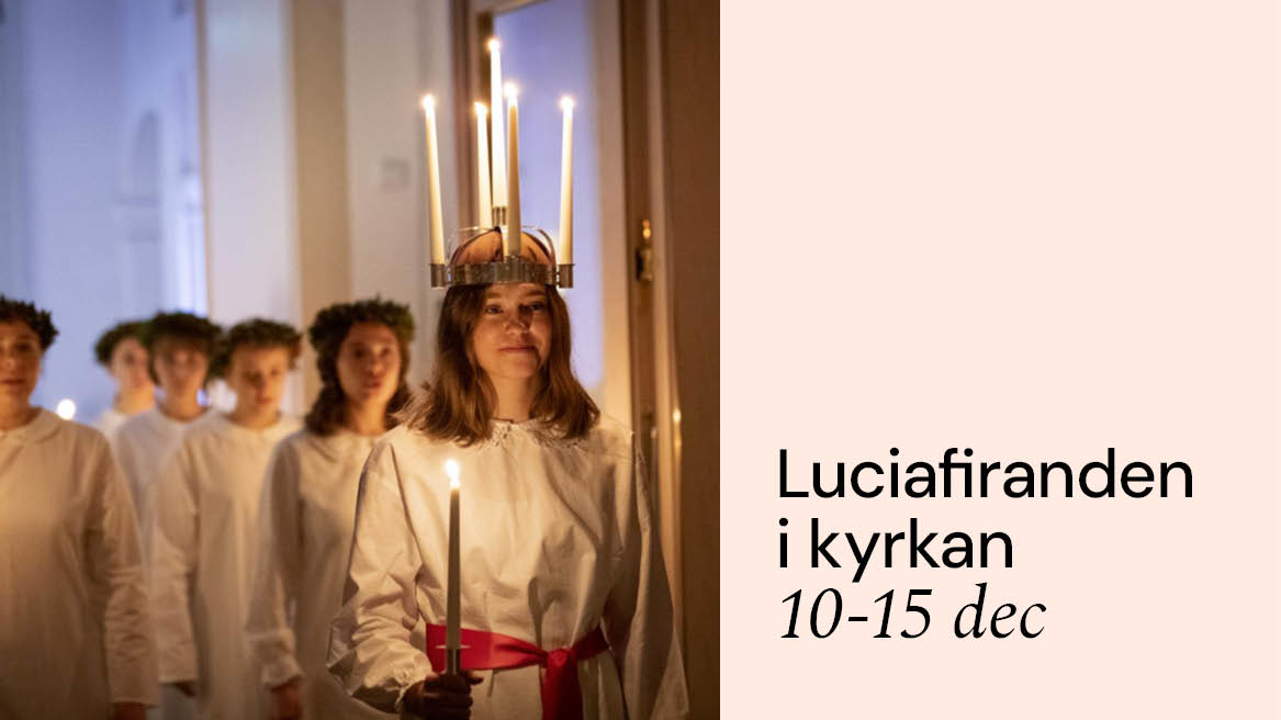 Välkomna till ett luciafirande i kyrkan. Stickcaféet bjudet på fika i församlingshemmet efteråt. 14.00–15.30 · torsdag 12 december Vibyggerå församlingshem