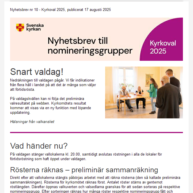 Om fler önskar få valkansliets nyhetsbrev till nomineringsgrupperna kan de anmäla sin e-postadress i prenumerationsformuläret på den här sidan!