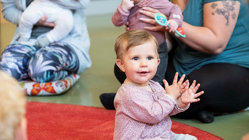 Babycafé med rytmik där våra minsta får rocka loss till härliga rytmer utifrån sin ålder tillsammans medrytmikpedagog.