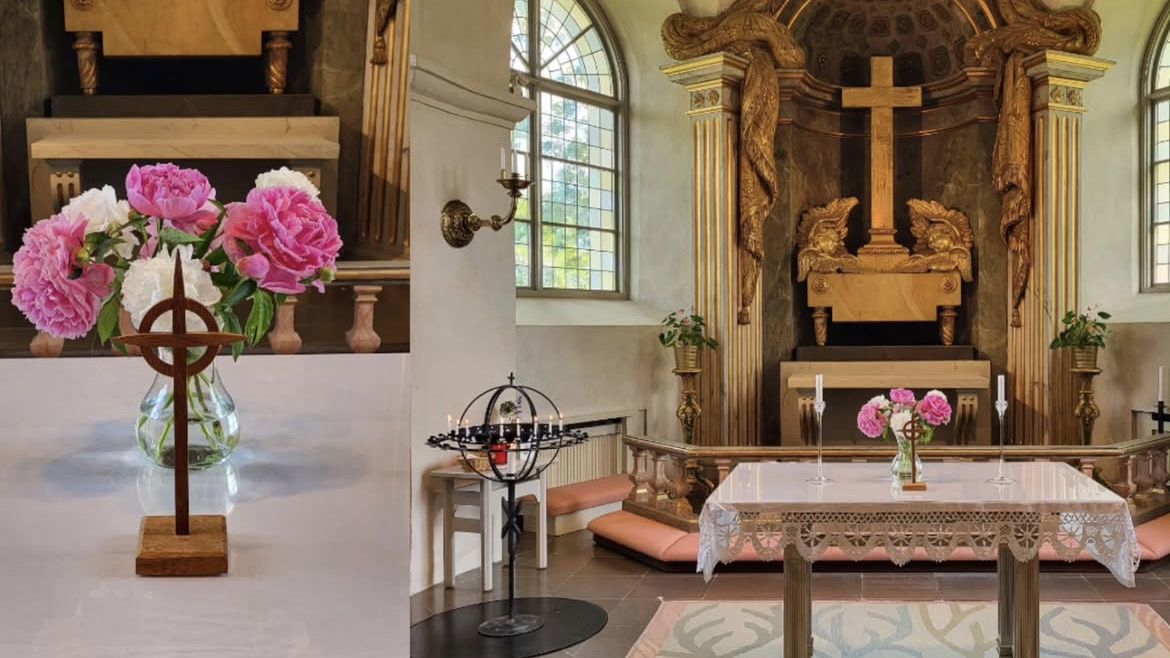 Vi dekorerar kyrkornas och kapellens altare med material från naturen och egenodlade blommor. Här har vaktmästare i Sollentuna kyrka gjort fin altarbukett av blommor på kyrkogården. Vi odlar också blommor i pallkragar som vi tar in och torkar för att använda under vinterhalvåret. Församlingen arbetar för en grönare kyrka och tänker på miljö- och hållbarhetsarbete i allt vi gör. Läs mer här