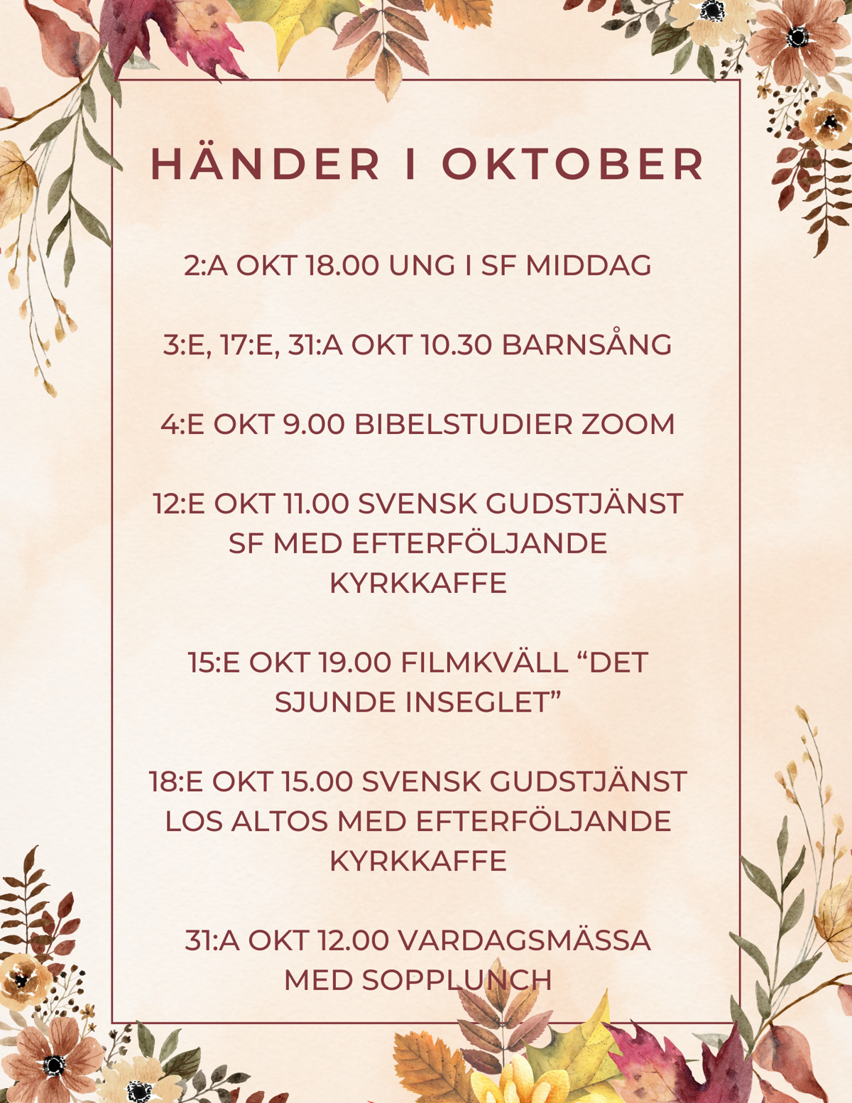 Nyhetsbrev från Svenska kyrkan San Francisco, oktober 2025