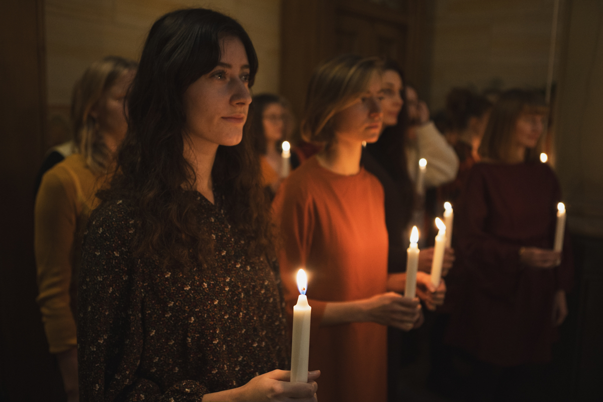 Kyrkan fylls av levande ljus när sånger och texter vävs samman till värme och tröst i denna musikgudstjänst i allhelgonatid där både bulgarisk damkör, svensk folkmusik och