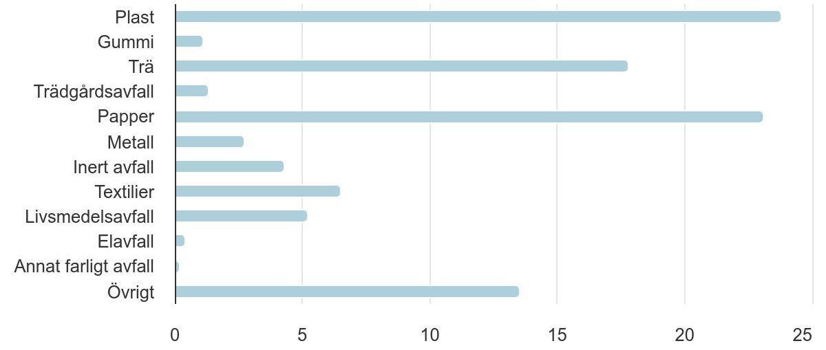 För första gången finns nu siffror på vad avfallet från svenska verksamheter innehåller. Det är Naturvårdsverket som låtit genomföra plockanalyser, och resultaten visar att ungefär en tredjedel av det som går till energiåtervinning består av avfallsströmmar som det finns krav på att sortera ut och lämna till materialåtervinning.