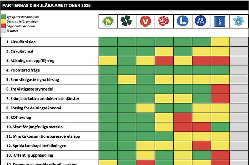 Miljöpartiet och Centerpartiet får delad förstaplats i Cradlenets och Avfall Sveriges kartläggning av riksdagspartierna. Samtidigt kliver Socialdemokraterna in som det mest aktiva när det gäller antalet cirkulära motioner.
