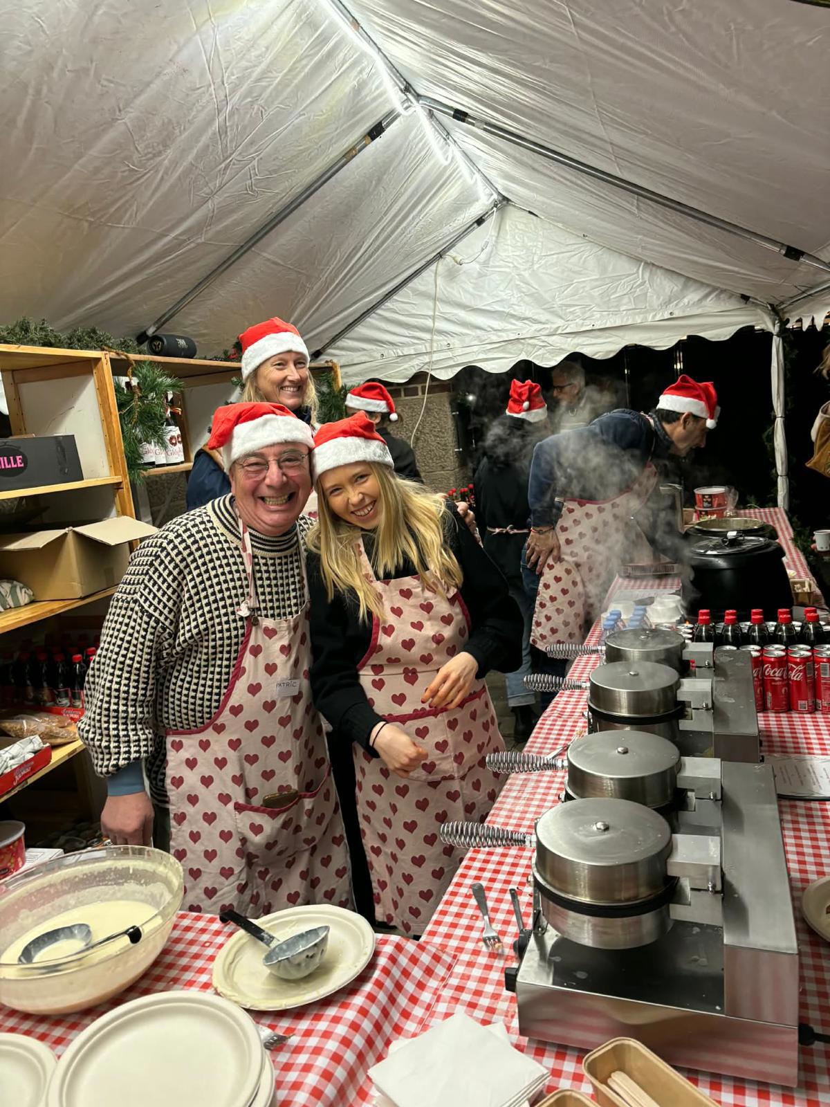 Fixa och sälja, korv, glögg och våfflor på gården, sälja godis i La Bonbonnerie.