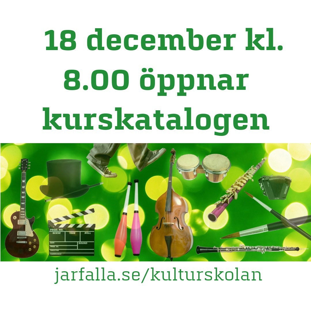 Järfälla kulturskola önskar God jul och gott nytt år! Vårterminens kurser startar från torsdagen den 15 januari. Undantag kan förekomma, så kolla med din lärare vad som gäller för just din kurs.