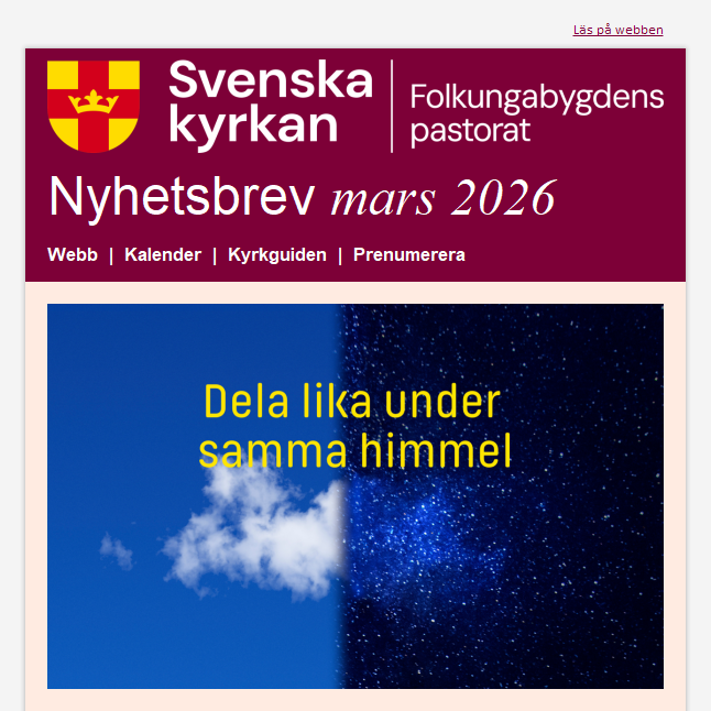 Tipsa någon om kyrkans nyhetsbrev Vet du någon som skulle vilja ha dessa nyhetsbrev? Be din vän följa denna länk https://www.svenskakyrkan.se/folkungabygden/prenumerera-pa-vart-nyhetsbrevet