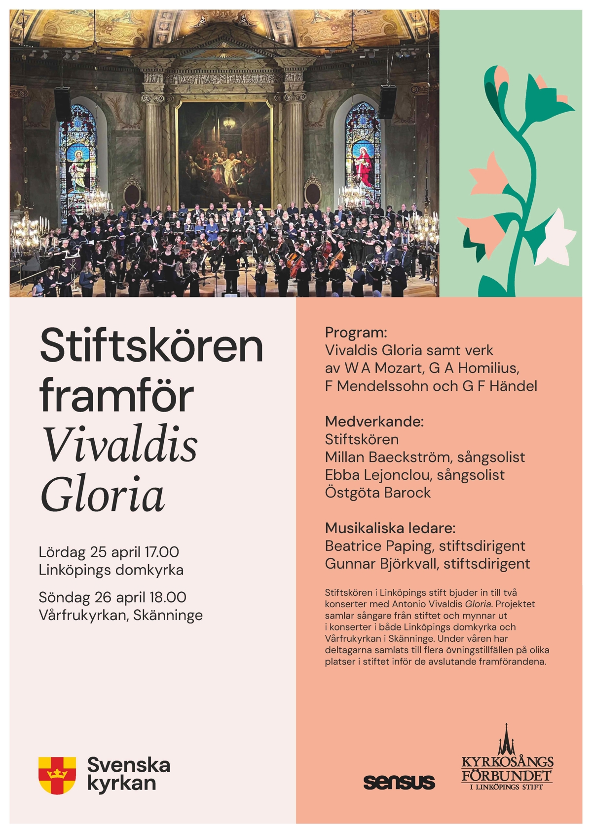 Stiftskören framför Vivaldis Gloria Söndag 26 april 18.00 i Vårfrukyrkan Skänninge