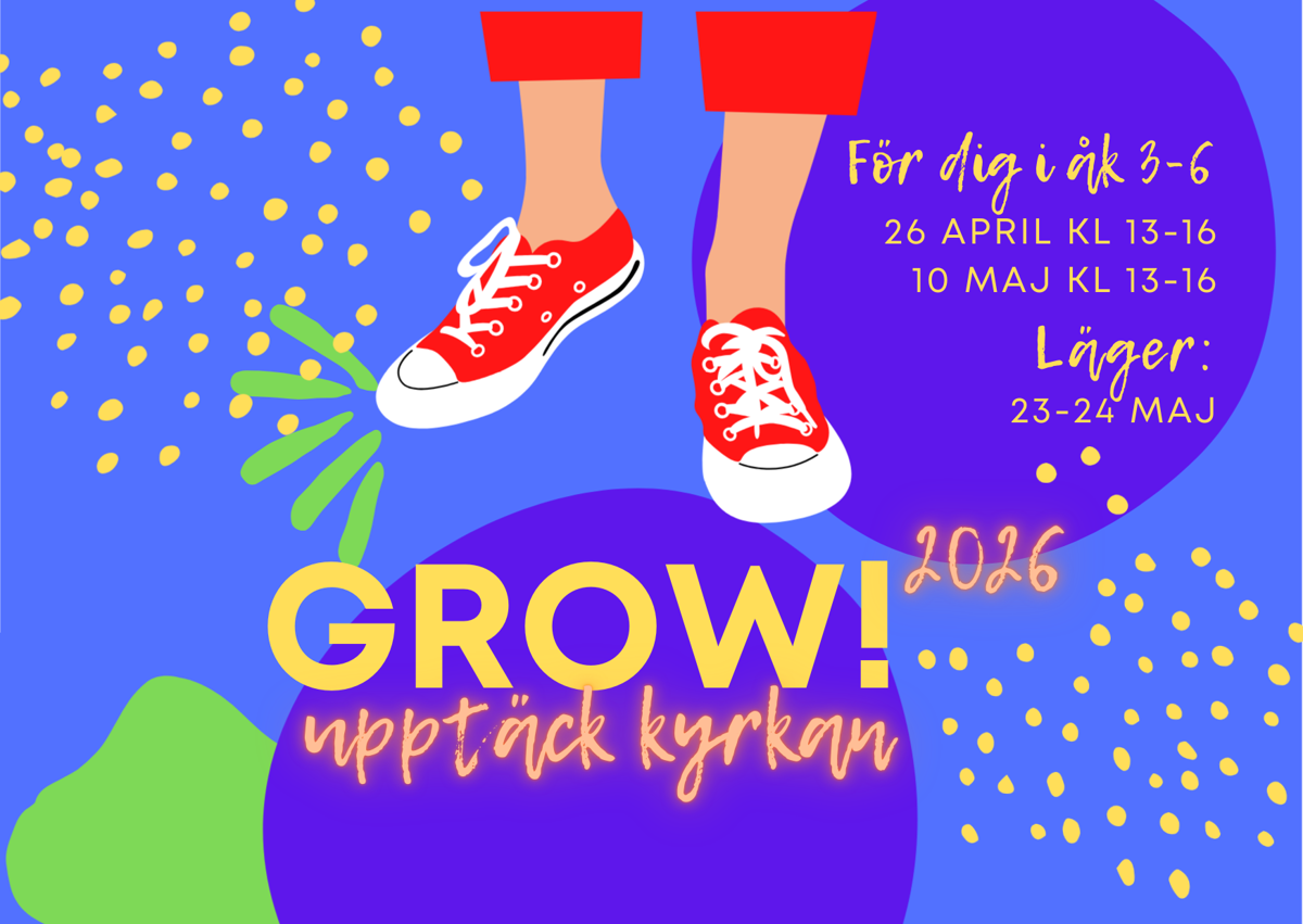 Grow! är en upptäckargrupp kring tron och kyrkan för barn i åk 3-6. Under våren är det tre träffar (inkluderar ett helgläger) och då kommer gruppen att lära känna varandra, prata, skapa, testa kul aktiviteter och hinna med en massa annat härligt tillsammans.