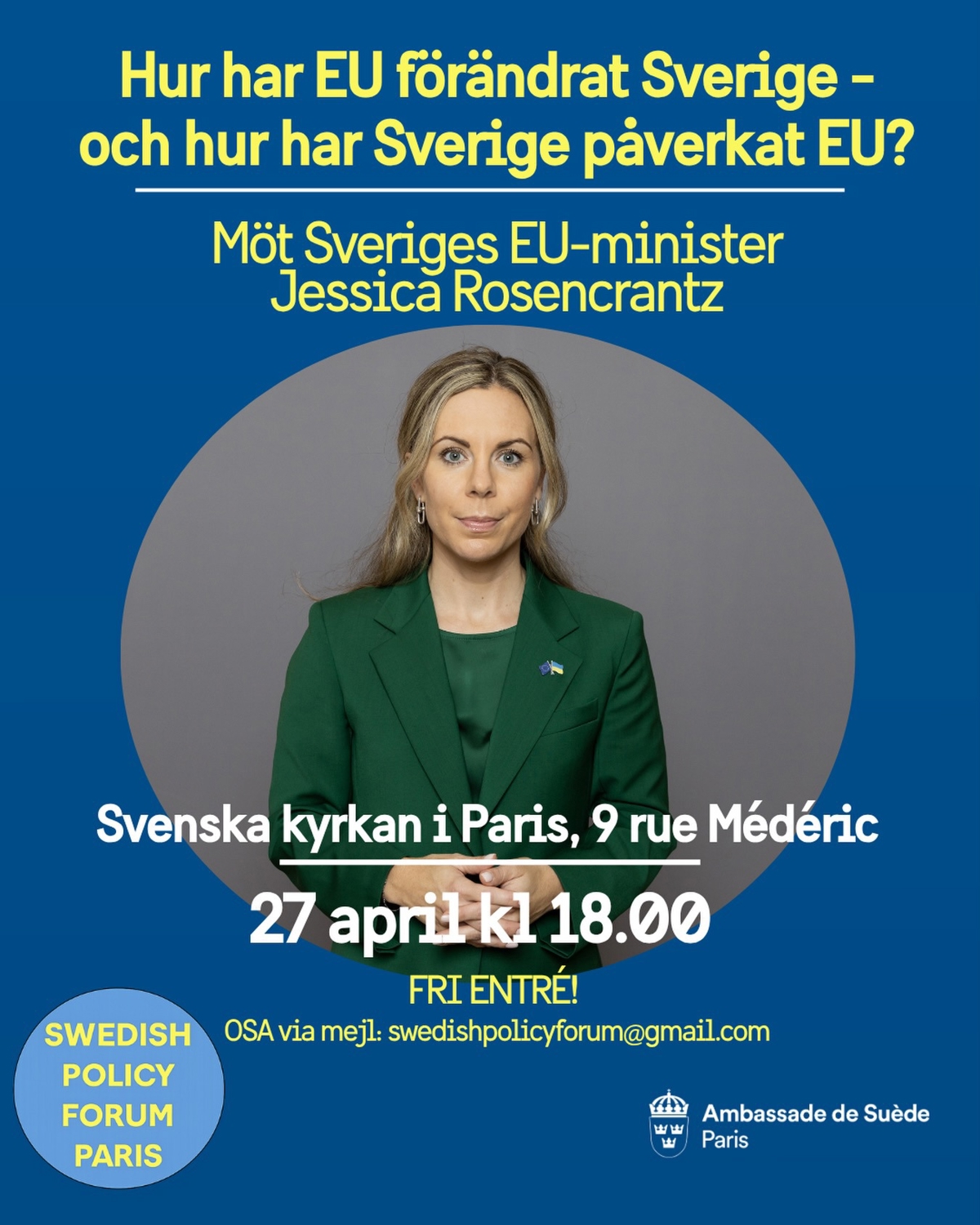 Deltagandet är gratis, anmälan via mejl swedishpolicyforum@gmail.comMåndag 27 april kl 18 i Svenska kyrkan