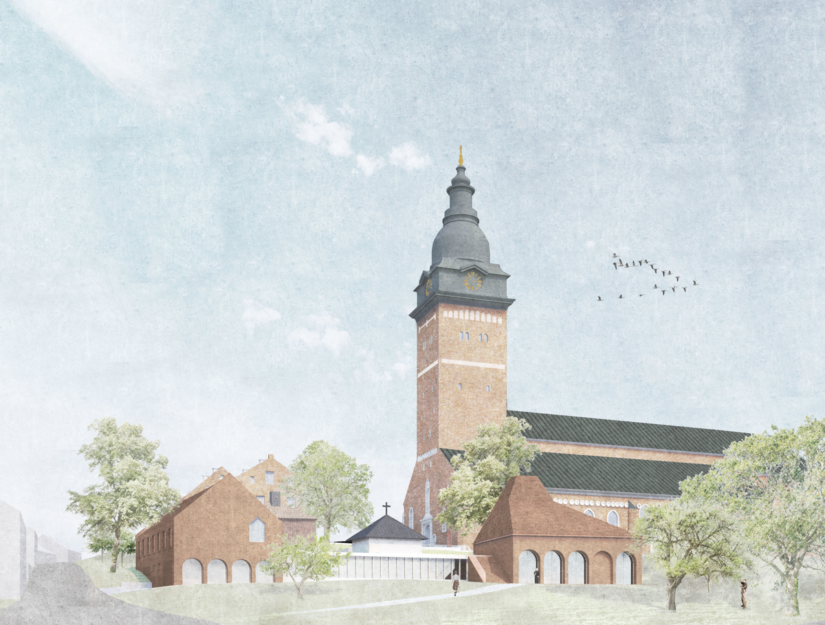 Vi, de sex huvudmännen, ser framför oss att domkyrkoberget än mer blir en förtätad plats för tro, utbildning och kultur. En miljö som skapar mening och samanhang för fler.
