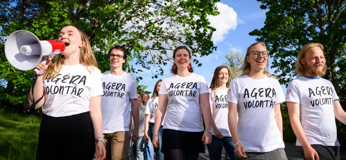 Under 2020 gick ett helt gäng unga från Strängnäs stift utbildningen. Aeravolontärerna kan komma ut till församlingar, ungdomsgrupper eller i andra sammanhang och berätta om sitt engagemang och vad man kan göra för att agera lokalt för en rättvis värld. - Det bästa med att vara Ageravolontär för mig är alla människor som är med! Det är folk som brinner för Act Svenska Kyrkans frågor och samtidigt delar en gemensam tro, som peppar och stöttar varandra och inspirerar!, säger Zandra Öhman Lund, ageravolontär och ordförande i Svenska kyrkans ungas distriktsstyrelse i Strängnäs stift. (På bilden med megafon)