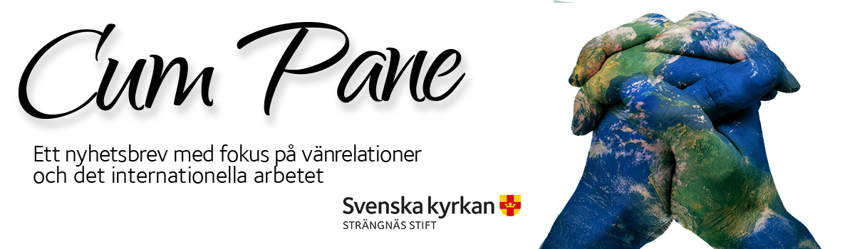 I din inkorg har det nu landat ett alldeles nytt nyhetsbrev – Cum Pane. Det kommer från oss i Strängnäs stift som arbetar med internationella relationer, som realiseras genom Act Svenska kyrkan, genom utbytesprojektet Ung i Världsvida kyrkan och genom våra Vänstiftsrelationer. Cum Pane betyder "med bröd" och får här symbolisera att vi har del i den gemensamma brödsbrytelsen i den världsvida kyrkan. Cum Pane kommer ut två gånger per år, i början av maj och i slutet av november. Vår önskan är att Cum Pane ska få fungera som en möjlighet till utbyte mellan alla i stiftets församlingar, pastorat och kontrakt som har relationer med församlingar och stift på olika ställen i världen. Därför skulle vi vilja att ni delar era goda exempel med oss och ni får gärna berätta sådant som kan ge nya erfarenheter och kunskaper.