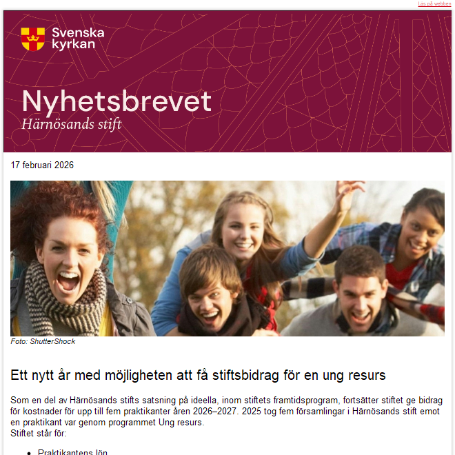 Prenumerera här på nyhetsbrevet för anställda, förtroendevalda och ideella medarbetare i Härnösands stift