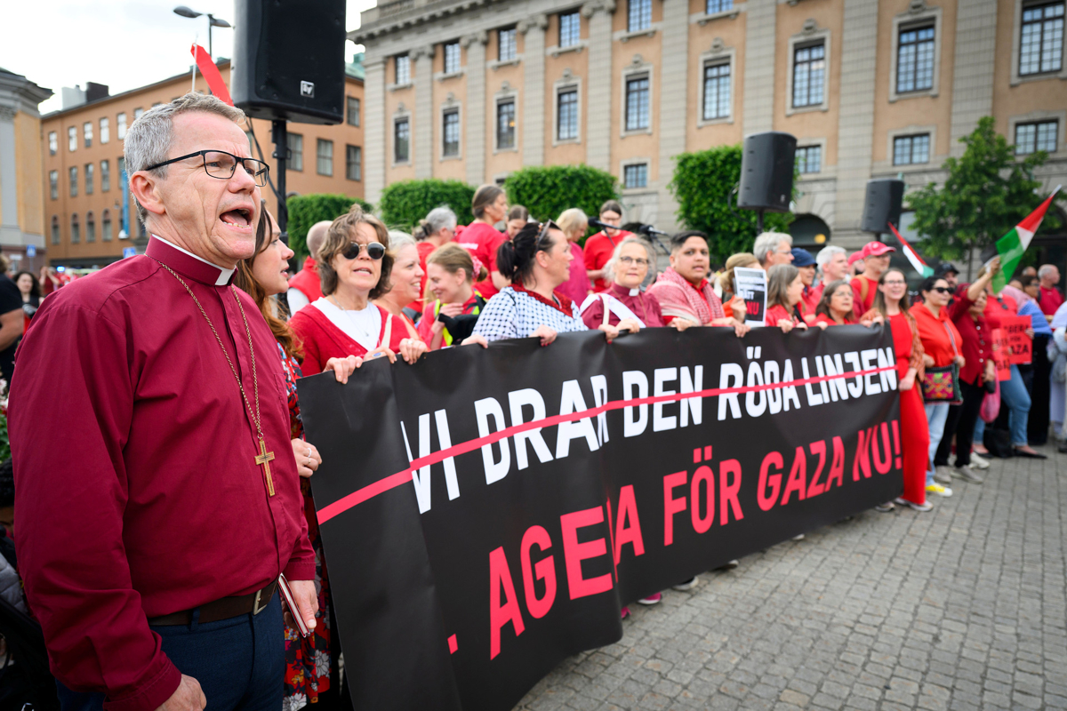 Manifestationen samlade ett brett spektrum av organisationer från det svenska civilsamhället, fackföreningsrörelsen och trossamfund, med ett tydligt budskap: Sverige måste agera mer kraftfullt för att skydda civilbefolkningen och stå upp för folkrätten. Act Svenska kyrkan och Stockholms stift var medarrangörer, och biskop Andreas Holmberg deltog i manifestationen liksom biskop Karin Johannesson från Uppsala stift.