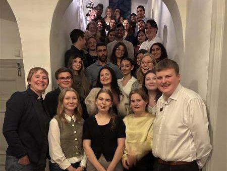Gruppbild från kvällen med unga vuxna i biskopsgården. Foto: Lotta Torstensson