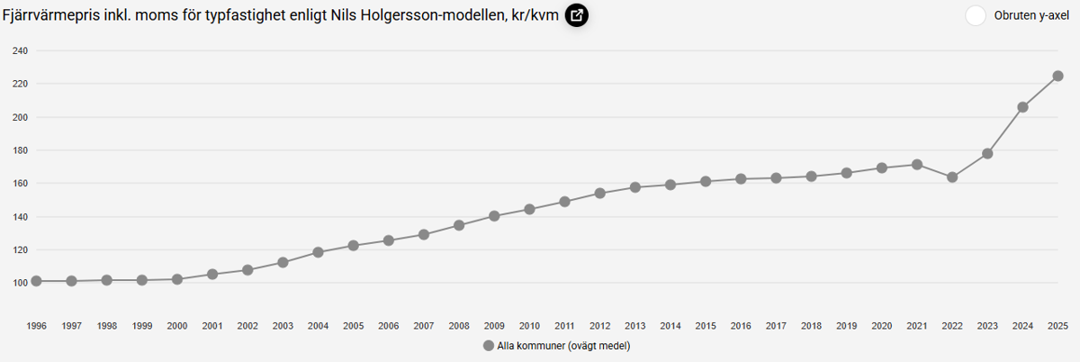 Fjärrvärmepriset fortsätter stiga 2025 enligt Nils Holgersson-modellen och visar en tydlig ökning för landets kommuner, en trend som bestått med undantag för trendbrott 2022.
