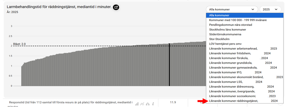Den nya visningen Jämförelser - Trygghet och säkerhet finns nu att hitta i Jämföraren. I visningen presenteras samlade nyckeltal som beskriver läget inom området där bland annat statistik över bränder samt larmbehandlings- och responstider för ambulans respektive räddningstjänst finns. Du hittar visningen här. Nu finns även en ny jämförelsegrupp i Kolada: Liknande kommuner räddningstjänst. Gruppen baseras på tätortsgrad och invånarantal.
